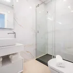 As janelas apresentam a vista para o mar. As casas de banho também incluem banheira.
